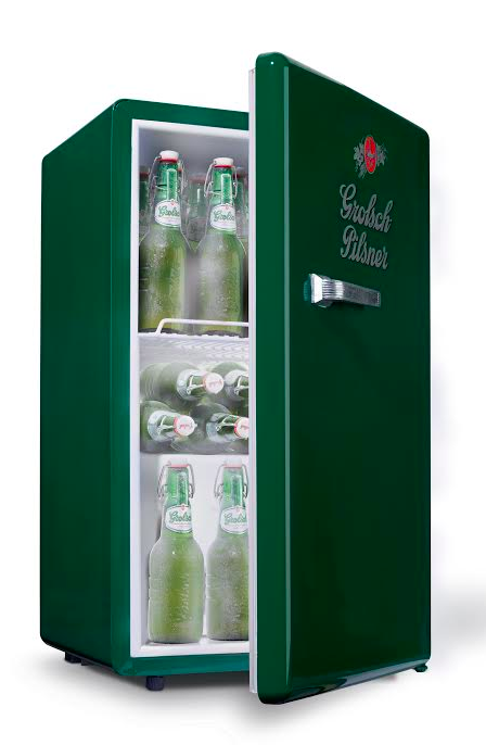Kan jij nu al geen Oranje meer zien of horen? Na de Koelserver en het Koelkrat komt het biermerk met de Grolsch Minibar. En die is hartstikke groen. De Minibar is een redelijk briljant idee. Denk aan een retro koelkast die klein genoeg is naast de bank te zetten, maar groot genoeg om je de hele voetbalwedstrijd van koud bier te voorzien. Nou, dat willen véél mensen.